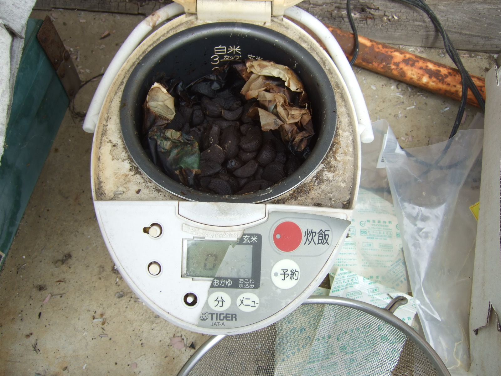 常温に冷えるまで虫の産卵を防ぐため網を掛けます:2時間程ですが。