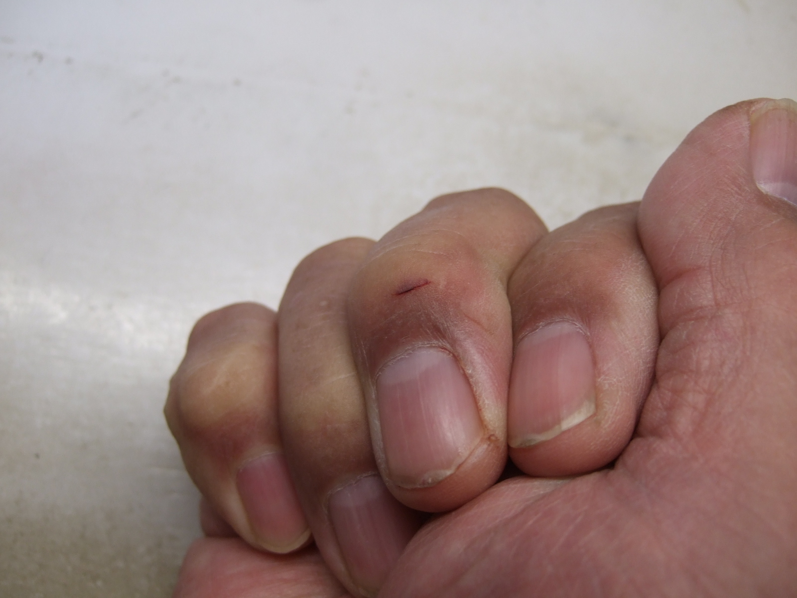 防寒用に着ていた木曾地方の時産品の綿入れ【ねこ】のお蔭で背中と腰椎の分部は保護されましたが外れた5センチほどがもろに・・。